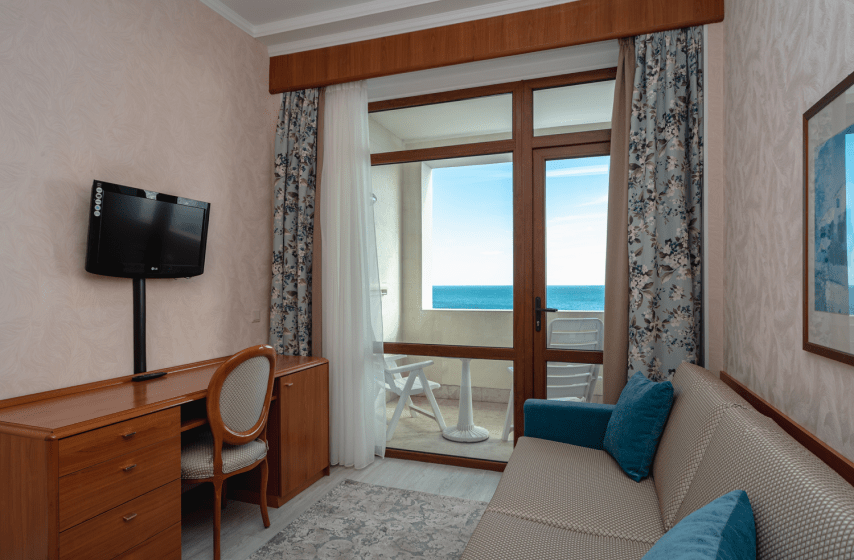 Номер площадью 18 квадратных метров размещён на втором и третьем этажах первого корпуса и включает двухспальную кровать и раскладной диван, что позволяет комфортно разместить до трёх гостей. Интерьер оформлен итальянской мебелью: прикроватные тумбочки, туалетный и рабочий столы, платяной шкаф. С балкона северной ориентации открывается вид на парк «Чаир». Оснащение представлено центральным кондиционированием, паркетным покрытием, мини-баром, электрочайником, телефоном, жидкокристаллическим телевизором и радио.