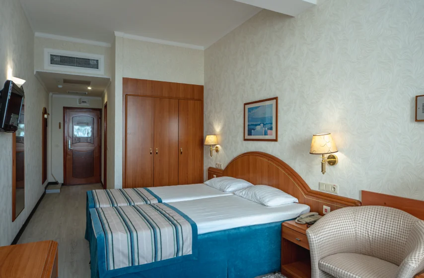 Номер площадью 16 квадратных метров располагается на втором–четвёртом этажах третьего корпуса и рассчитан на двоих гостей. Пространство оборудовано двумя односпальными кроватями, рабочим местом и комплектом необходимой мебели. Балкон с восточной ориентации открывает вид на парк «Чаир» и морскую даль. В оснащении присутствуют центральное кондиционирование, ламинированное напольное покрытие, мини-бар, электрочайник, телефон, жидкокристаллический телевизор и радио.