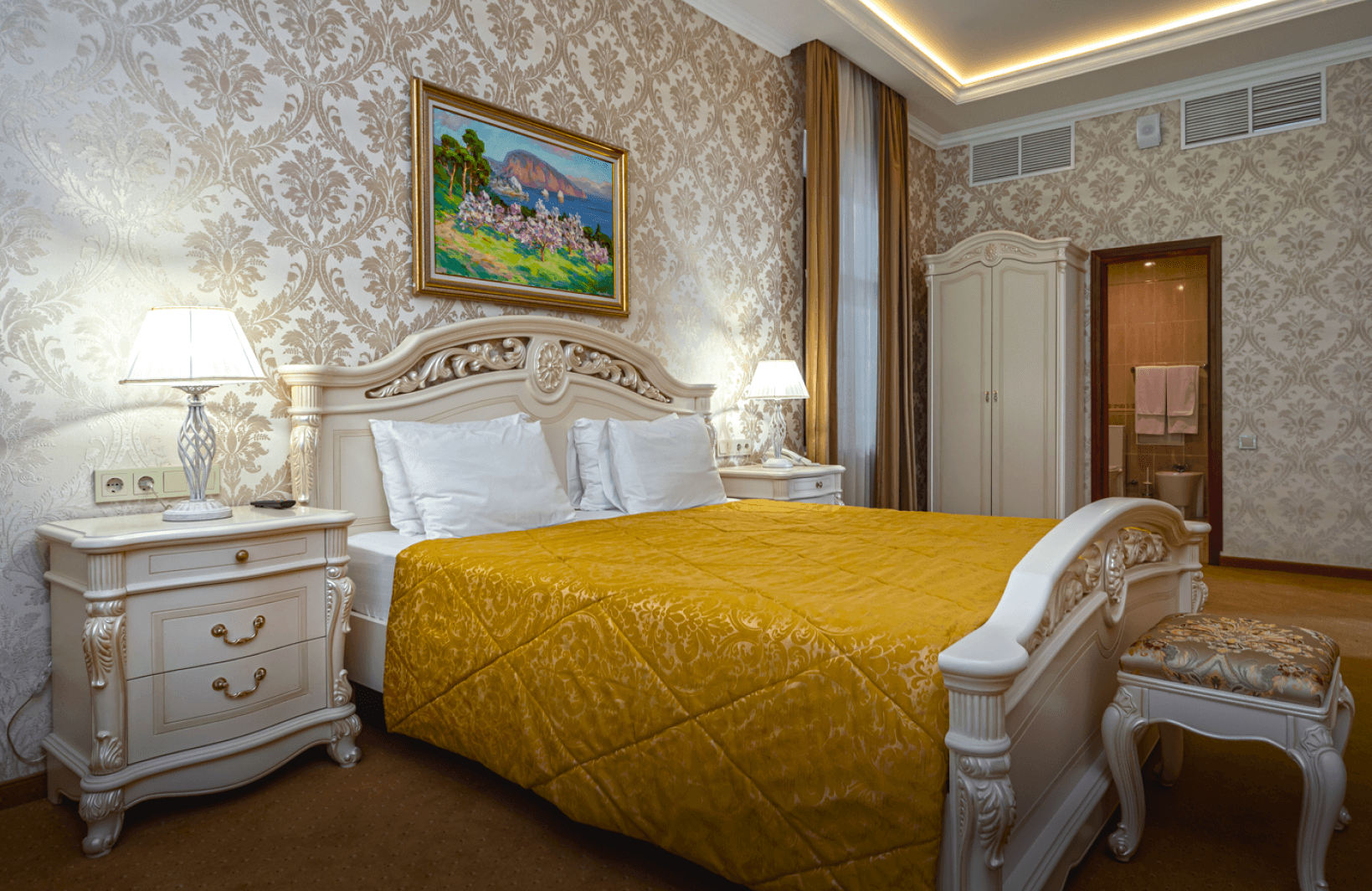 Двухкомнатный номер площадью 42 квадратных метра на втором–четвёртом этажах первого корпуса выполнен с использованием итальянской мебели и состоит из смежных спальни и гостиной. Спальная зона оборудована двумя отдельными кроватями и туалетным столиком, гостиная — раскладным диваном, креслом, журнальным столиком, рабочим местом, электрочайником и набором посуды. Балкон южной ориентации открывает вид одновременно на парк «Чаир» и морскую даль. Номер рассчитан на размещение до четырёх гостей. Техническое оснащение включает центральное кондиционирование, паркетное покрытие, мини-бар, телефон, жидкокристаллический телевизор и радио.