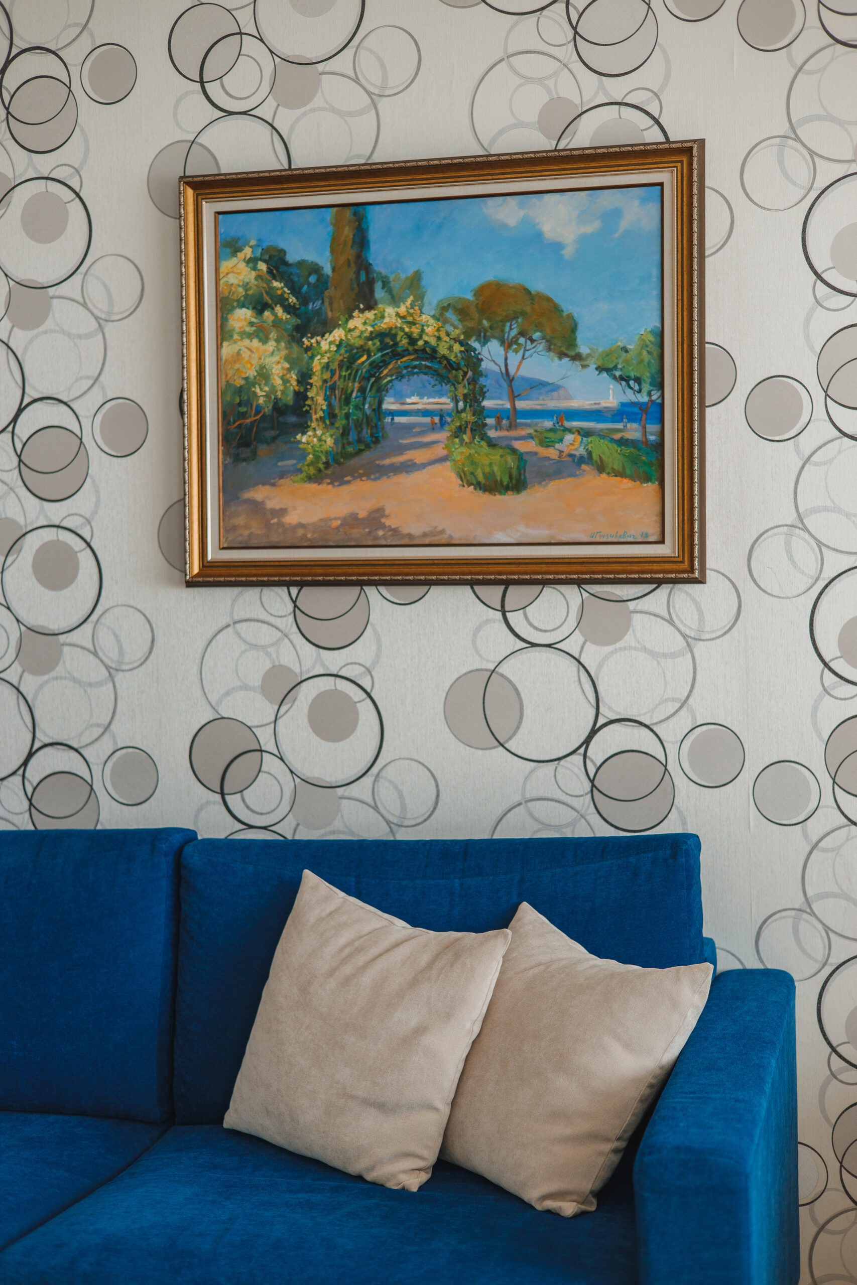 Двухкомнатный номер площадью 42 квадратных метра на четвёртом этаже первого корпуса выдержан в винтажной стилистике и рассчитан на размещение до четырёх гостей. Спальня с двуспальной кроватью из двух матрасов, прикроватными тумбочками, туалетным столиком и сейфом отделена от гостиной раздвижной дверью-купе. Гостиная зона включает раскладной диван, кресло, рабочее место и мини-кухню с обеденным столом, набором посуды, фраже и электрочайником. Два санузла повышают комфорт проживания. С балкона южной ориентации открывается вид на море. Оснащение представлено центральным кондиционированием, паркетным полом, мини-баром, телефоном, жидкокристаллическим телевизором и радио.
