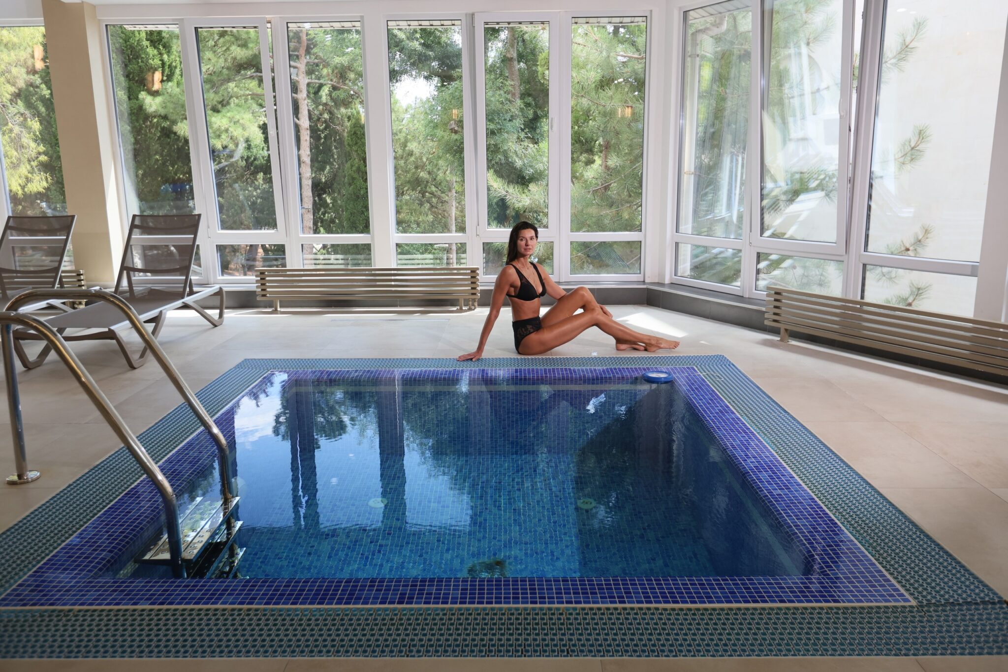 Купель обеспечивает контрастное воздействие с температурой воды 12–14 градусов. Процедура рекомендуется после посещения сауны или джакузи для усиления терапевтического эффекта и тренировки сосудистой системы.